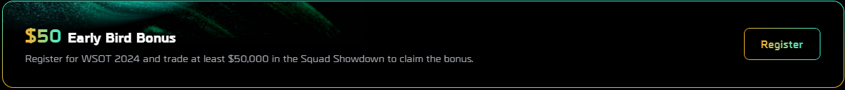 대회 참가를 일찍 결정한 얼리버드 참가자들에게는 레버리지를 감안한 트레이딩 총액이 5만 달러를 넘으면 50 USDT를 보너스로 지급한다고 하니 참여를 희망하시는 분들은 조금 일찍 등록하시고 보너스 챙겨가시면 좋겠습니다.