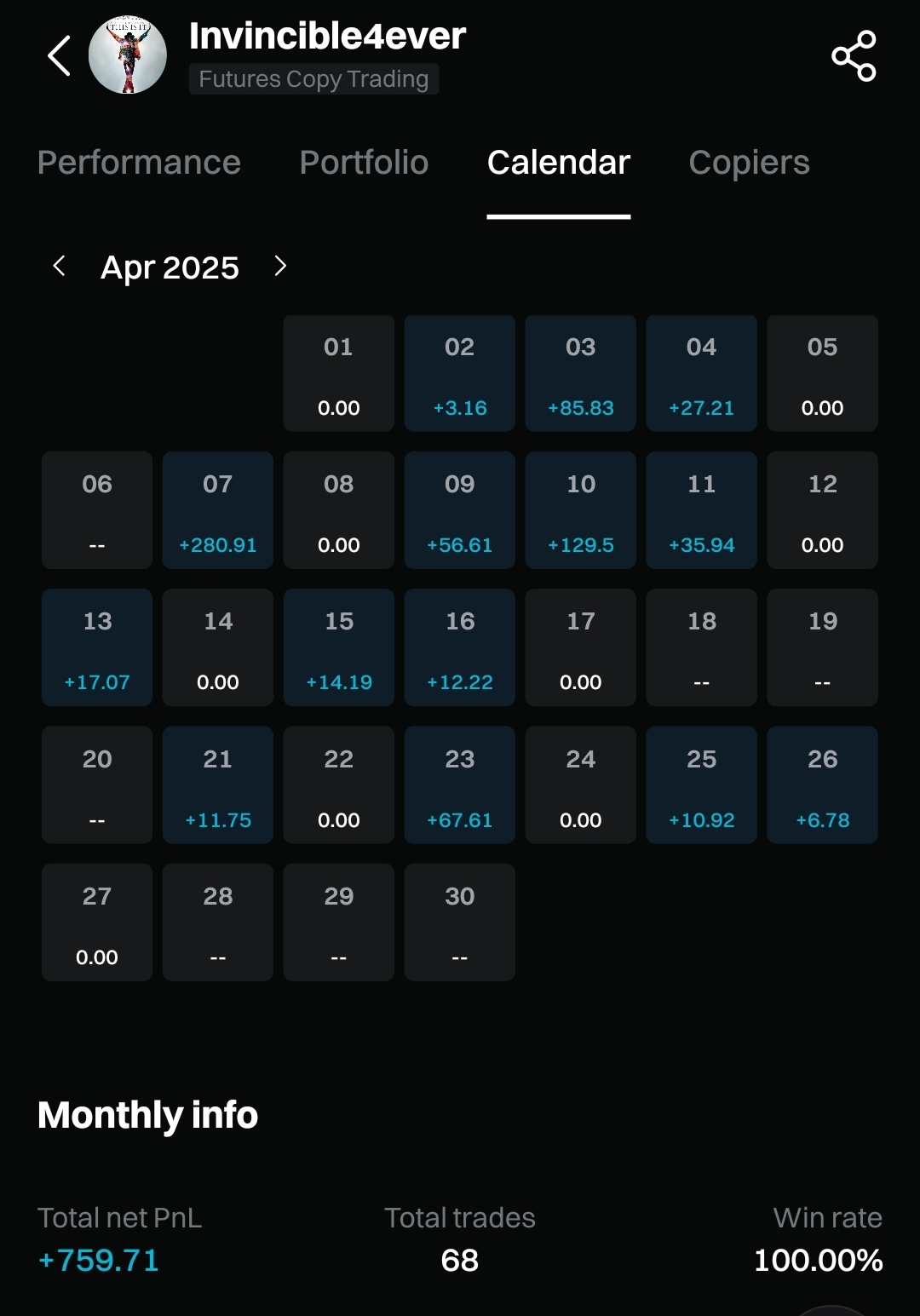 4월에도 손실없이 100% 수익실현하여 2024년 11월부터의 무손실 기간을 6개월차로 이어가고 있다