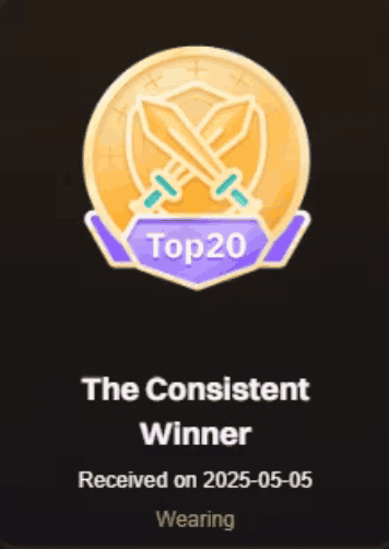 | [비트겟] 승률 탑20 트레이더 뱃지 획득! (0) | 2025.03.04 |