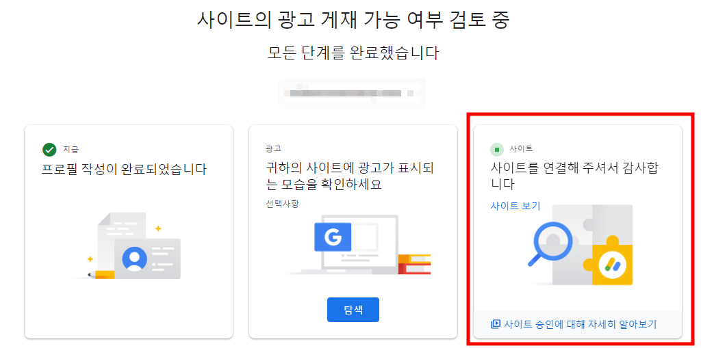 단순히 애드센스 관리페이지에서 로그아웃하고 다시 로그인하라는 말씀이 아니라, 크롬에 연결되어있는 구글 계정을 아예 로그아웃을 하고 다시 로그인 해보라는 말씀을 드리는 겁니다. 그렇게 구글계정을 새로 로그인 후 다시 애드센스 홈페이지에 새로 로그인해서 들어가니 바로 제일 첫페이지에 연결하고 싶은 페이지 url을 연결하라는 안내가 나타났습니다.