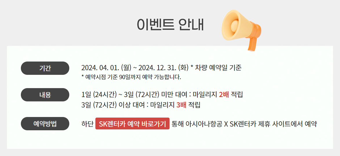 해당 이벤트는 올해 말까지 계속된다고 하니까 할인혜택과 마일리지 적립까지 저렴하게 이용해보세요~~