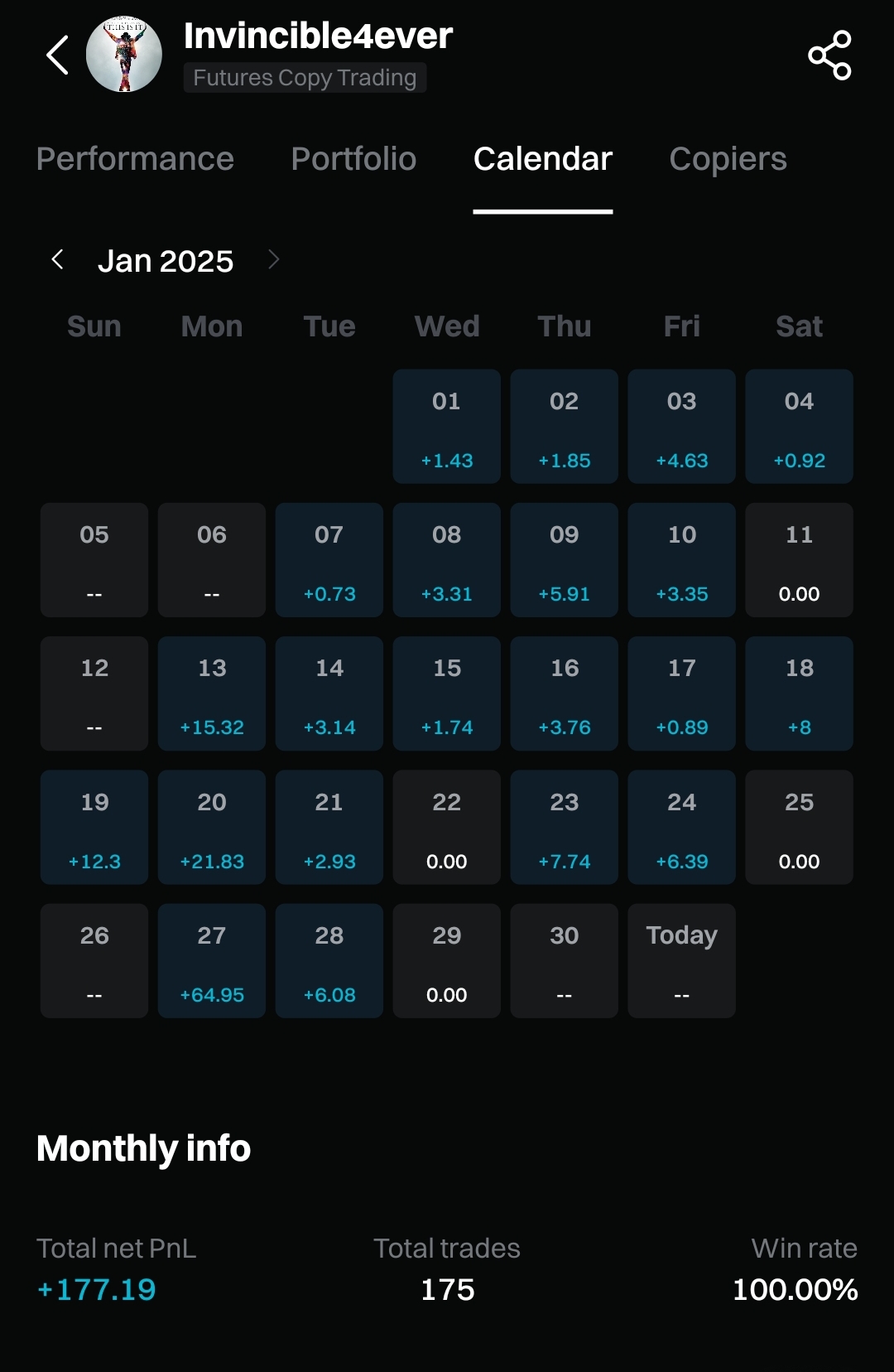 * 궁극적으로는 꾸준하고 지속적인 수익창출로 카피 트레이드 팔로워를 모집하여 상위권 카피 트레이더로 성장하는 것을 목표로 하고 있음