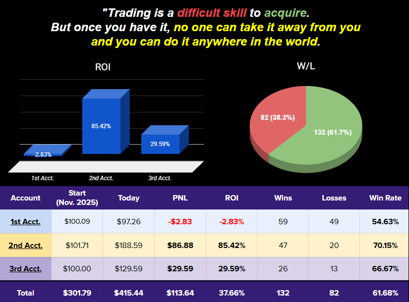 - Net PnL: +$113.64